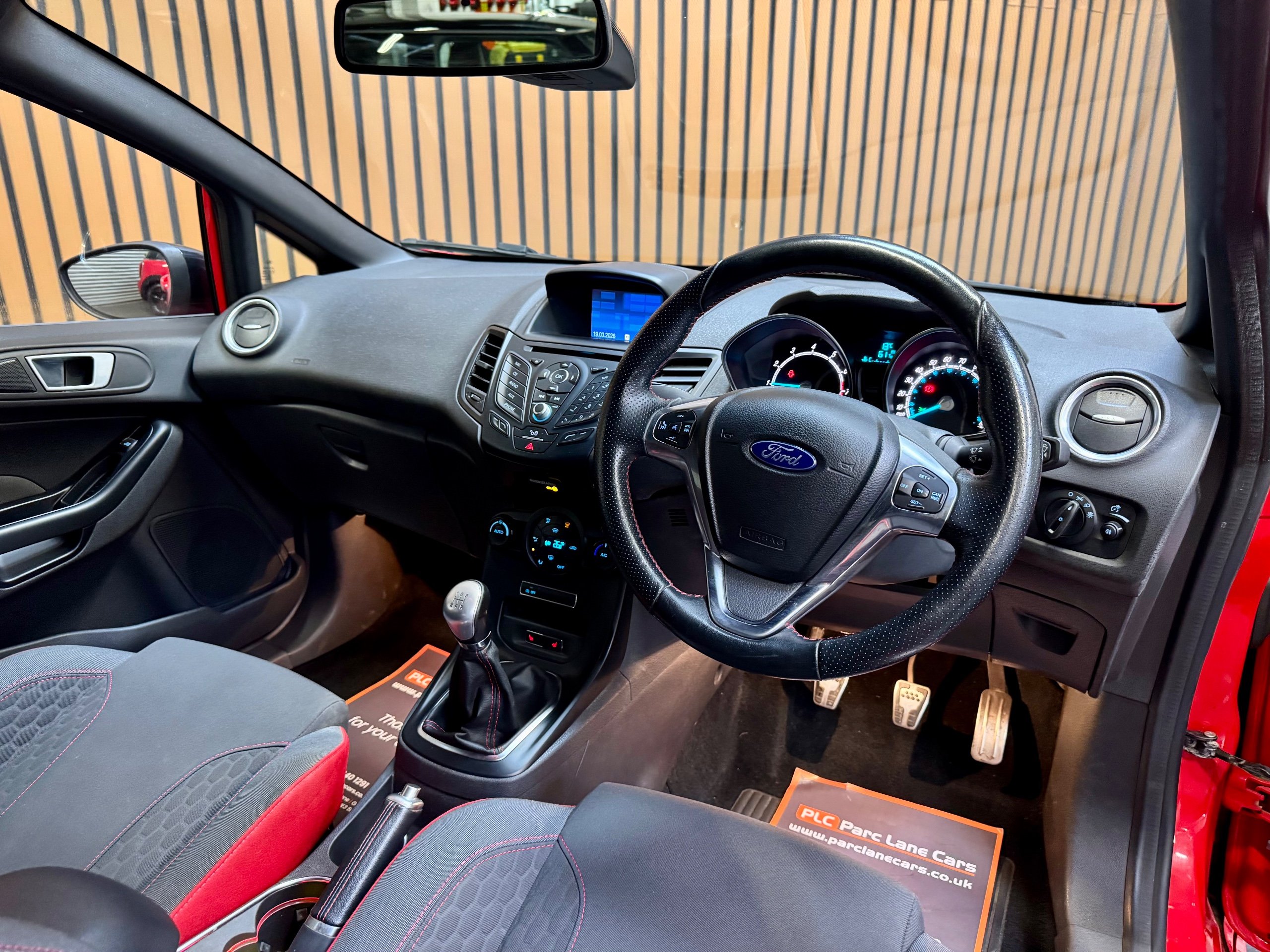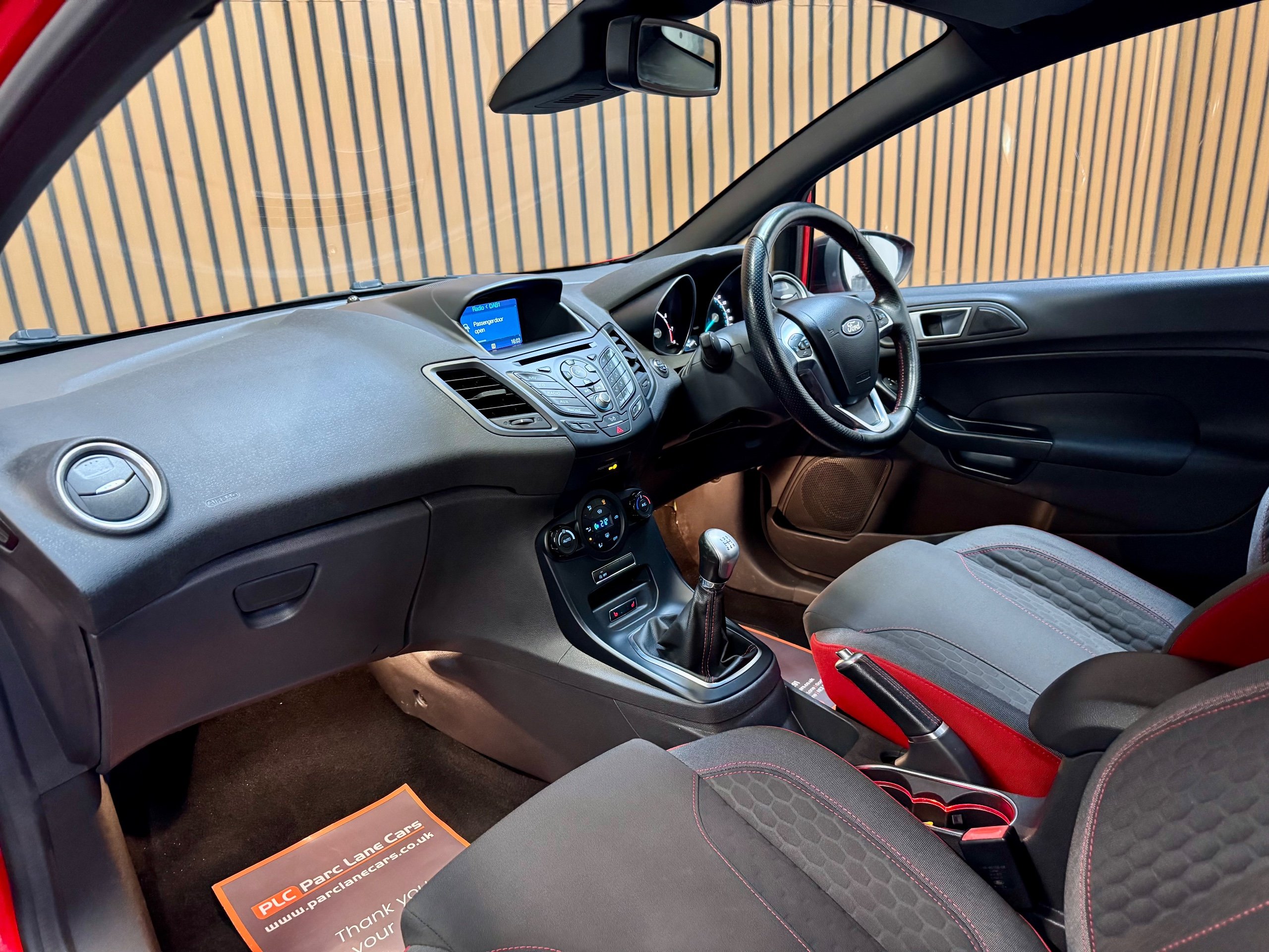 PARC LANE CARS OF GOSFORTH PRESENT THIS BEAUTIFUL LOW MILEAGE FORD FIESTA ST LINE RED EDITION. FINISHED IN RACE RED GLOSS WITH A BLACL ROOF, MIRRORS AND WHEELS WITH STUNNING CHARCOAL CLOTH INTERIOR TRIM WITH RED DETAILING!