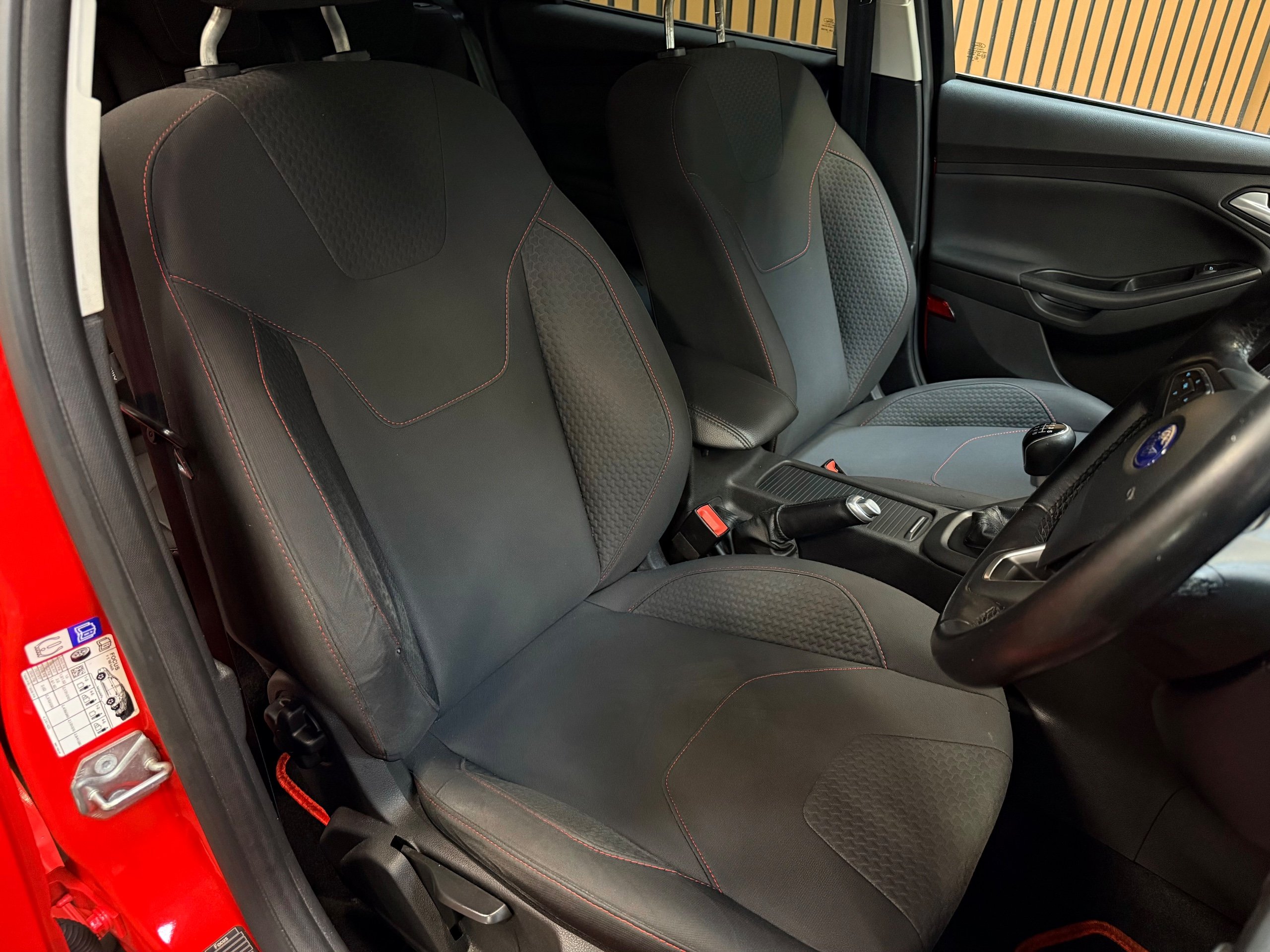 PARC LANE CARS OF GOSFORTH PRESENT THIS LOVELY FORD FOCUS 1.5 TDCI ZETEC S. FINISHED IN RED RED WITH STUNNING CHAROAL CLOTH INTERIOR TRIM WITH RED STITCHING!