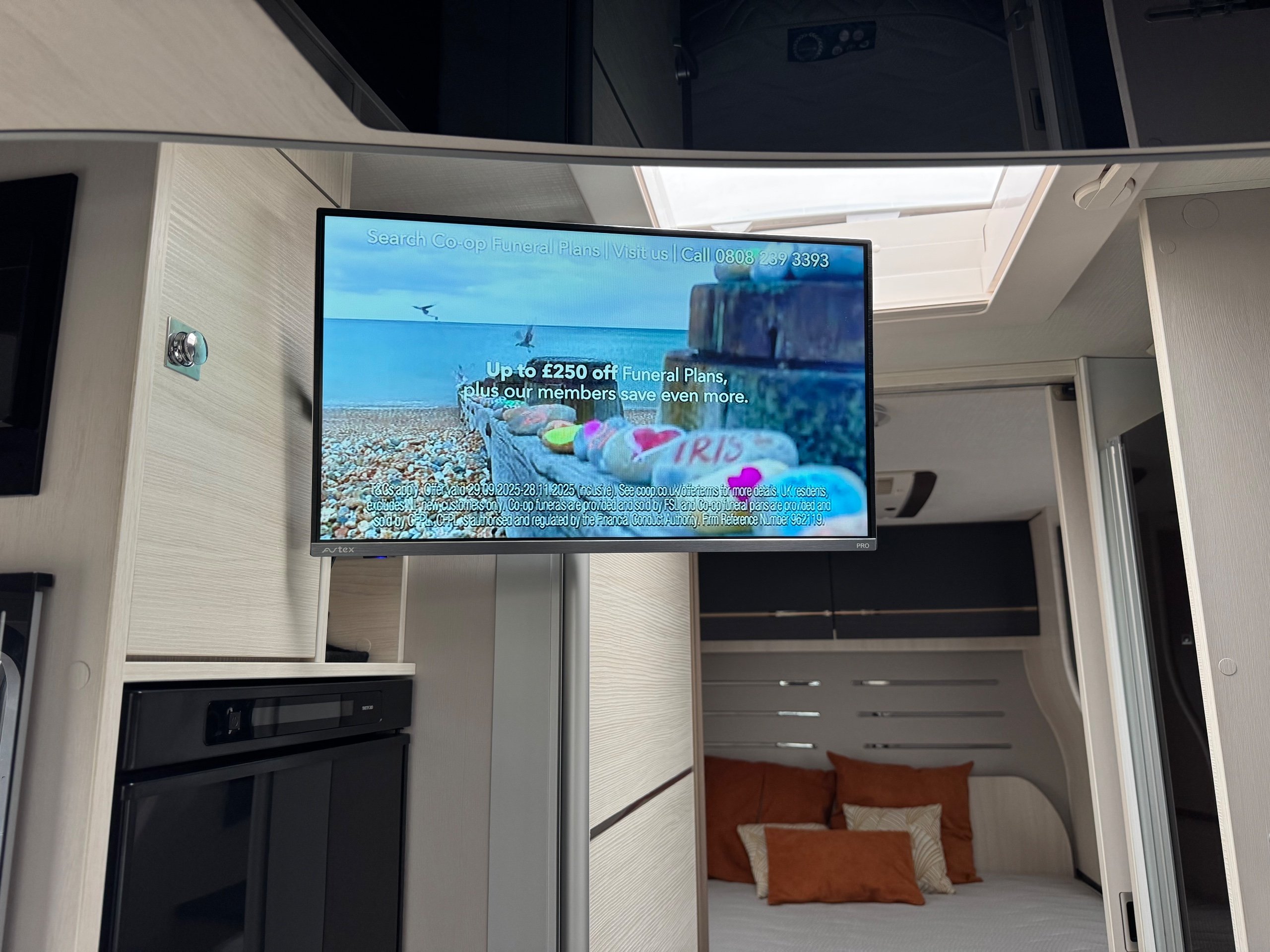 TV bracket, USB inputs, LED & reading lights, and numerous electrical sockets