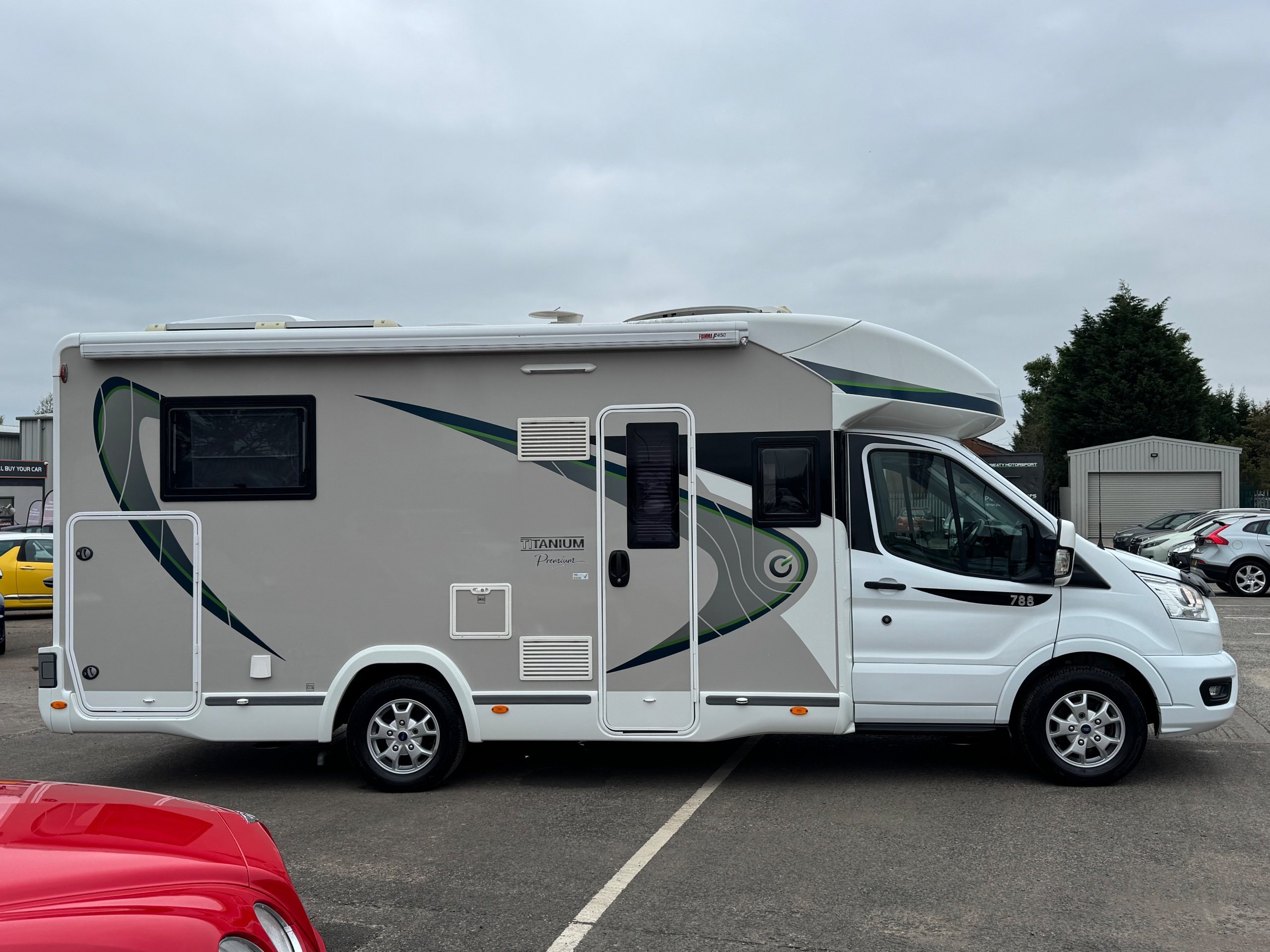 Parc Lane Cars of Gosforth proudly present this 2021 Chausson 788 Titanium Premium 4-berth motorhome, built on a Ford Transit chassis. With just 9,300 miles, this modern, stylish, and feature-rich motorhome is perfect for family adventures or touring in comfort.
