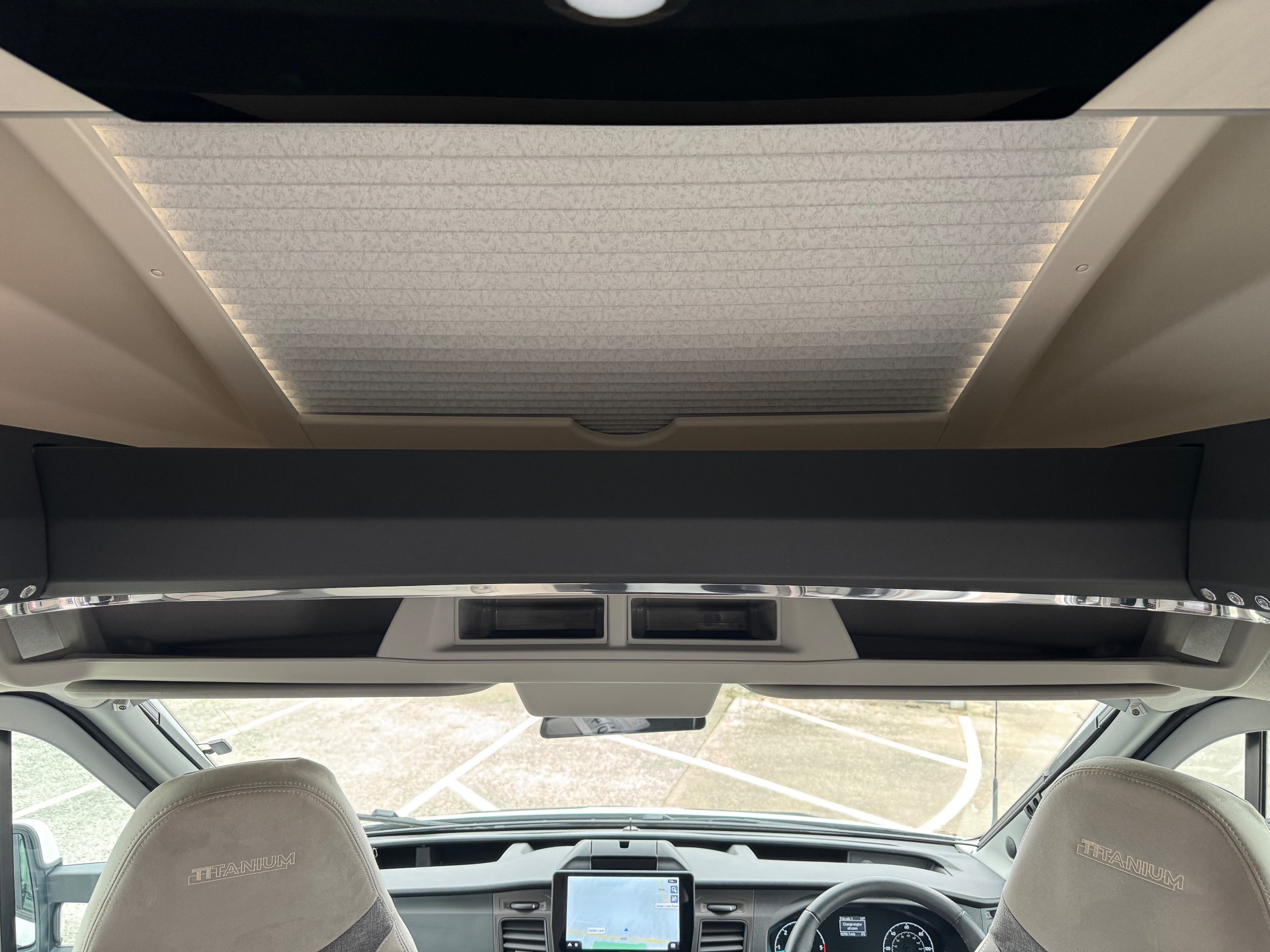 Large touchscreen cab with DAB radio, Sat Nav, steering controls, and reverse camera